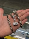 In the center of the composition is an expressive square cubic zirconia of a noble white shade, framed by the radiance of small inlays - small white stones.