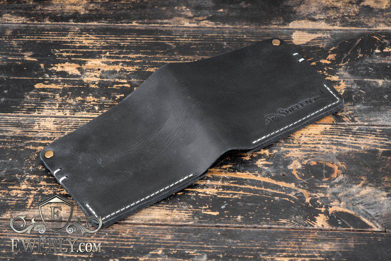 Мужской кошелек чёрный - ручная работа из натуральной кожи 11056DO
