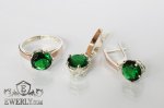 Срібне кільце і сережки з зеленими каменями для жінок