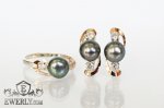 Срібне кільце і сережки з чорними фіанитами у вигляді перлів