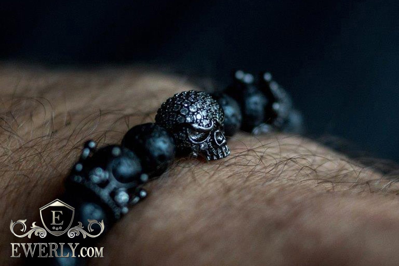 Браслет з вулканічного каменю для чоловіка чорний 123017BS
