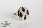 Жіноча каблучка зі срібла з чорними фіанитами і золотом