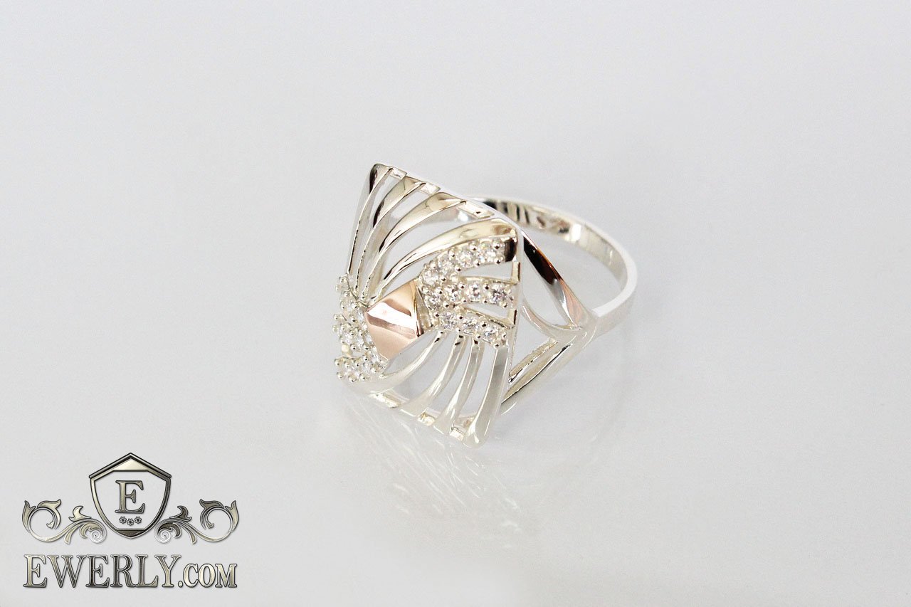 Широке жіноче срібне кільце із золотими вставками